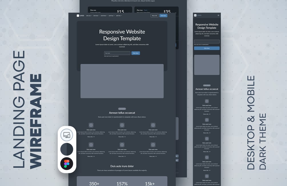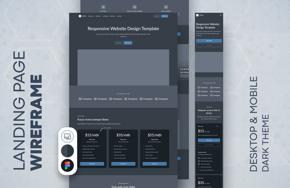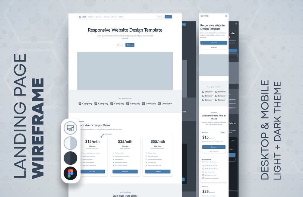Landing Page Wireframe #87 (Light and Dark theme)