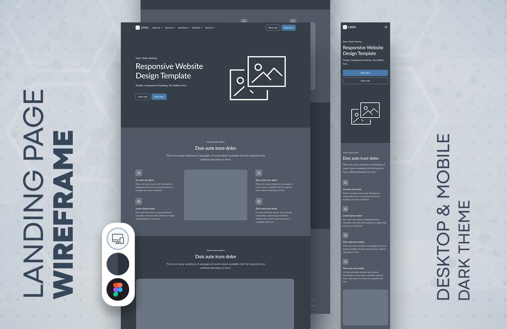 Landing Page Wireframe Kit for Figma (Dark Theme) — Build With Precision, Lead User Attention, Maximize Conversions