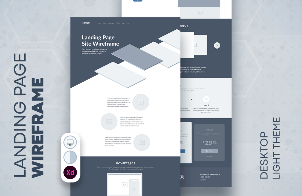 Landing page template design for business. Wireframe. UX/UI.