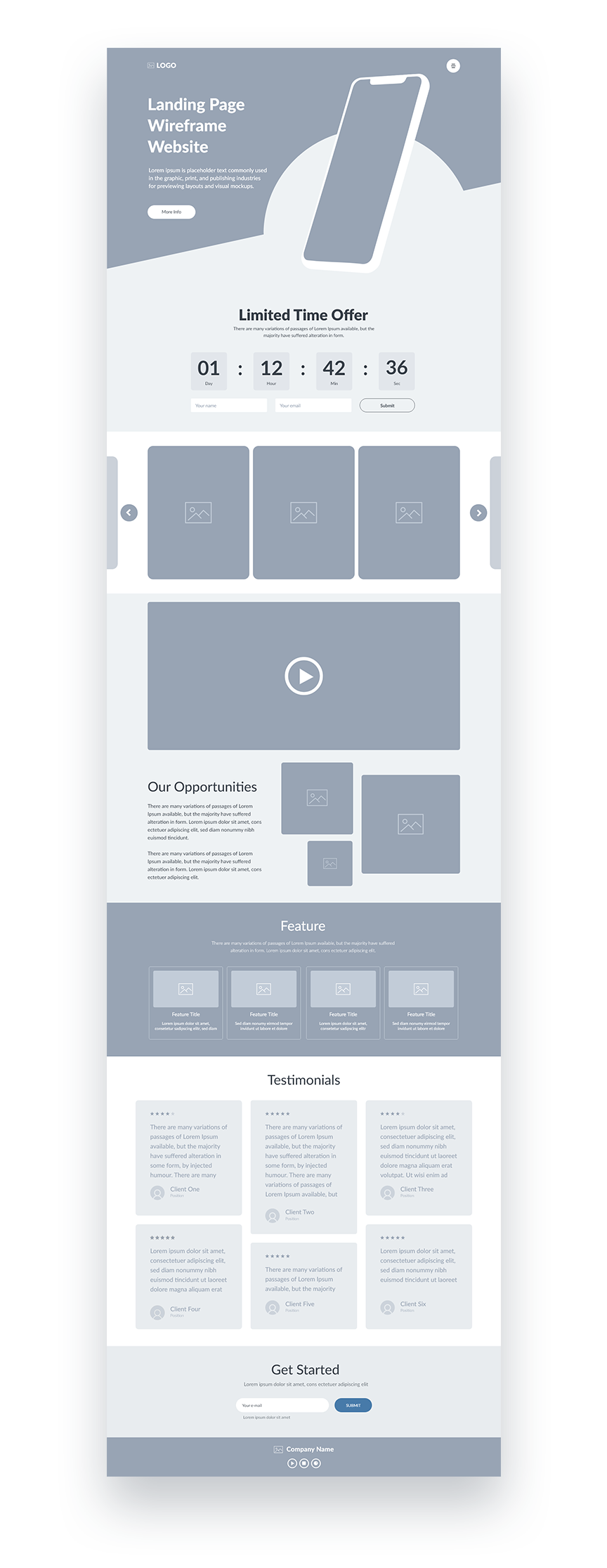 Here is a basic wireframe for a landing page that serves as a help tool in design:
