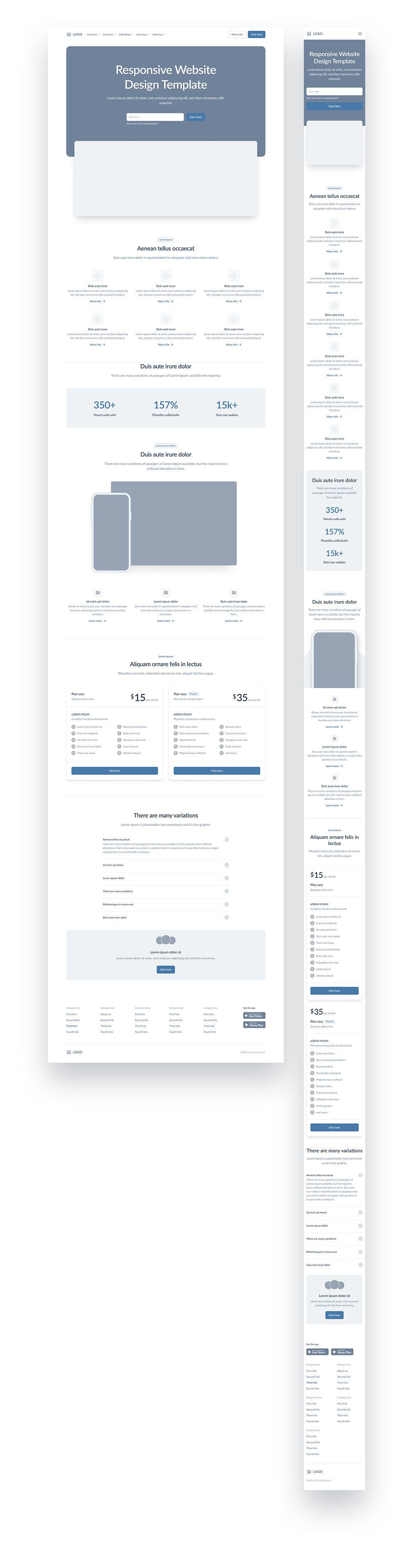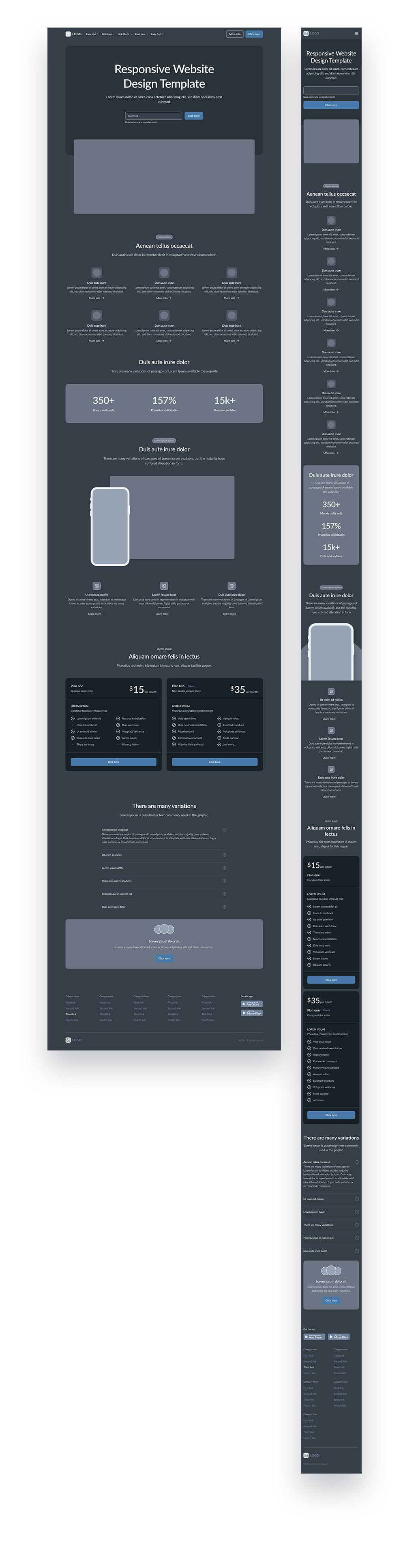 Landing Page Wireframe Kit for Figma, responsive UI wireframe kit, light and dark Figma templates, Figma wireframes for designers.