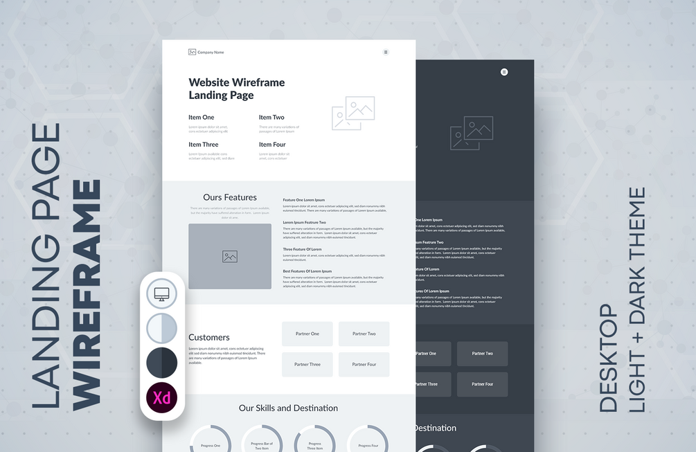 Landing Page Wireframe #31 (Light and Dark theme)