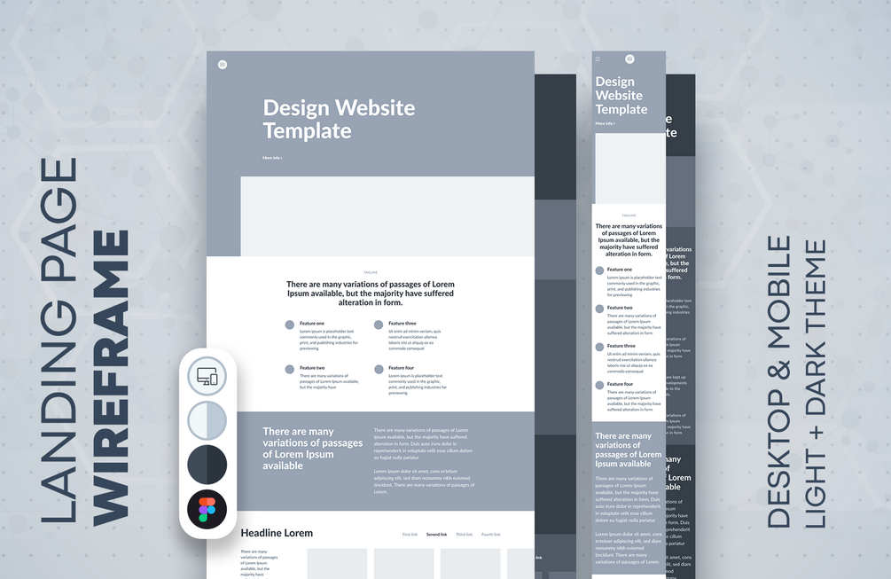 Landing Page Wireframe #73 (Light and Dark theme)